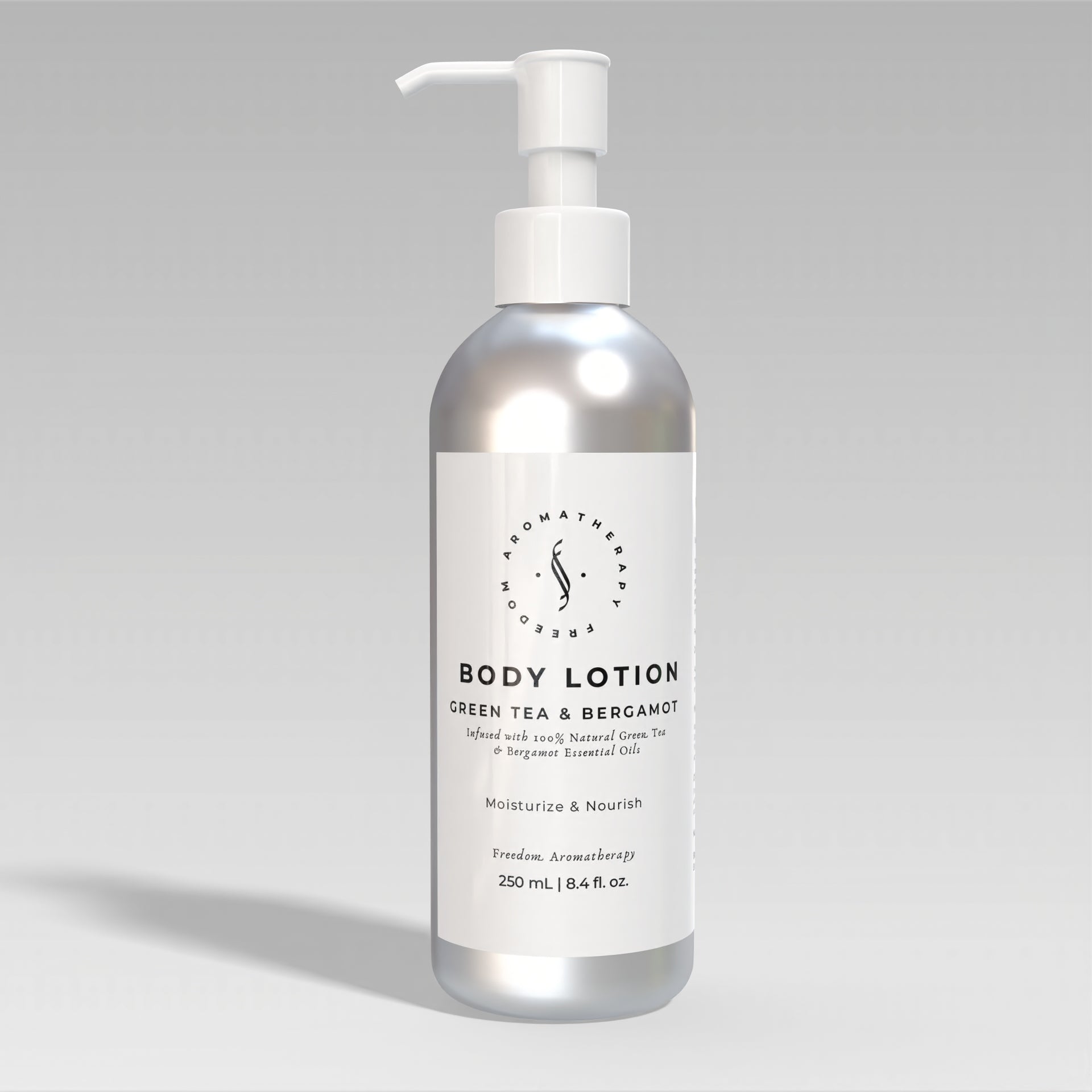 Indulge in the luxurious Green Tea & Bergamot Body Lotion by Freedom Aromatherapy. Infused with pure and natural essential oils, this rich formula deeply hydrates, nourishes, and softens your skin, leaving it with a radiant glow and a fresh, rejuvenating fragrance.
